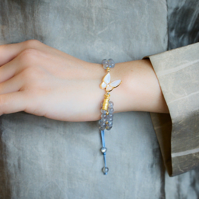 Color: 6MM gray Moonstone butterfly woven hand rope