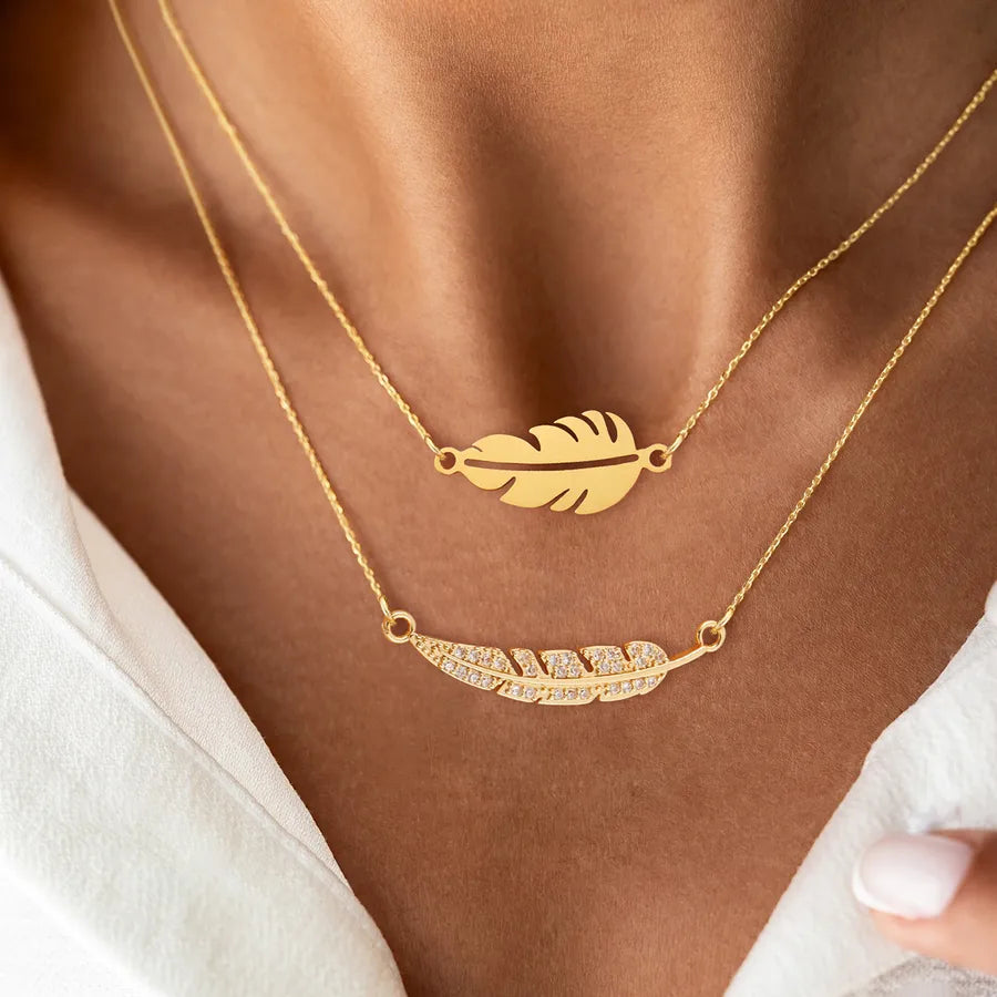 Feather Pendant Necklace cable chain