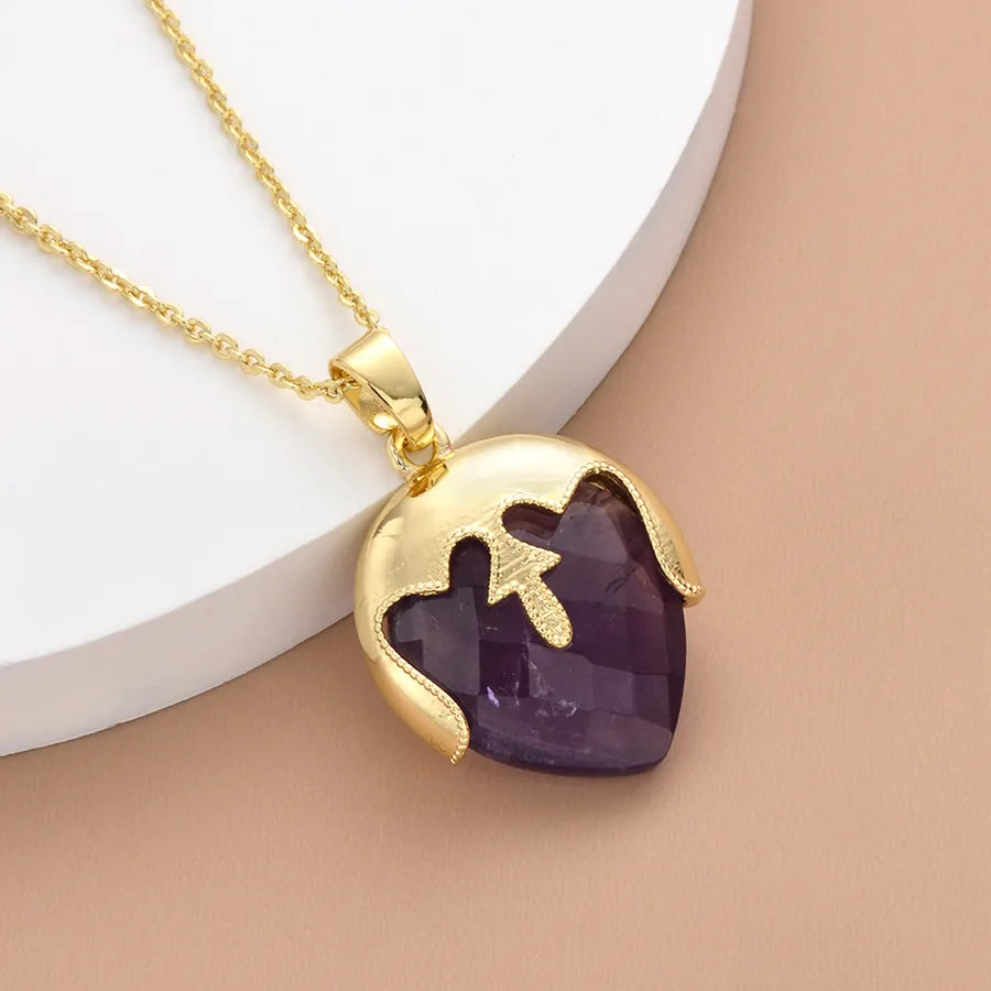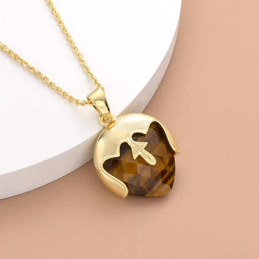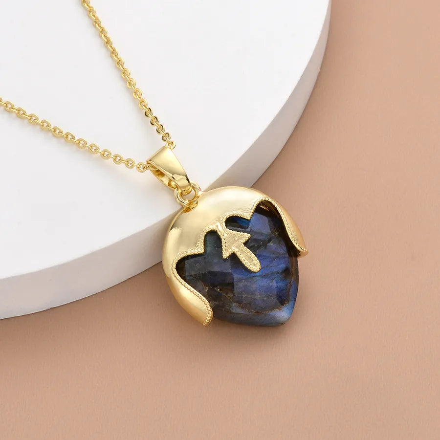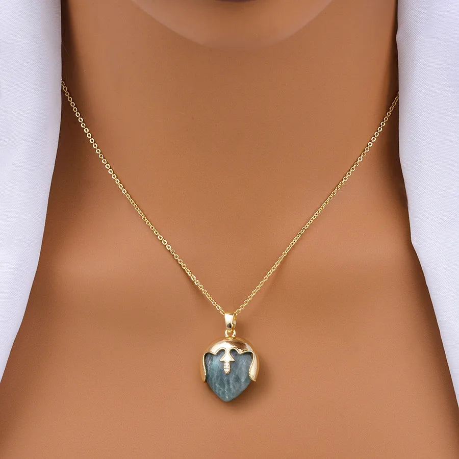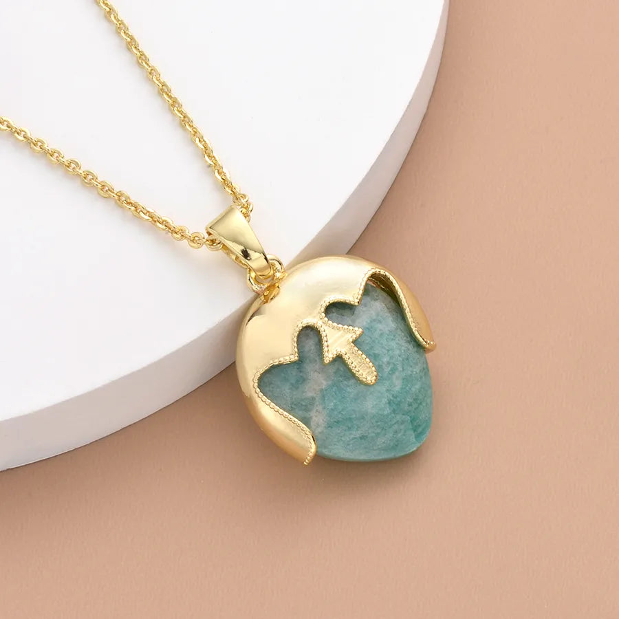 Geometric natural stone Copper Pendant Necklace